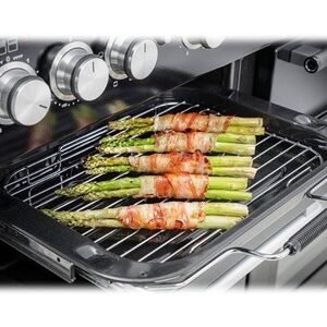 - Plancha + Grilles télescopiques + Gril coulissant Deluxe glide-out + Sonde à viande dans le four multifonction