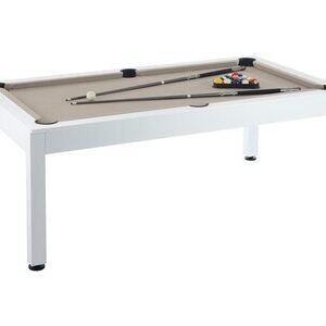 Table de billard Vente-Unique Billard d'extérieur blanc et taupe avec housse - L213,4 x P121,1 x 79,7 cm - STAZIO