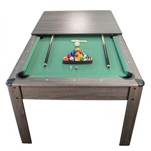 Table de billard Play 4fun Billard Américain AMBIANCE 7Ft - 226,5 x 126,5 x 80 cm avec accessoires et plateau dînatoire - Gris - Vert