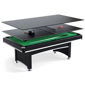 Table de billard Play 4fun Billard Américain AMBIANCE 7Ft - 226,5 x 126,5 x 80 cm avec accessoires et plateau dînatoire - Couleur Noir - Vert