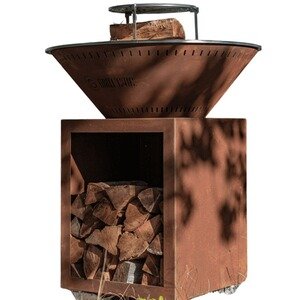 Barbecue à charbon Grill'Chic TRADITIONNEL Brasero Double Cuve Corten 83x92cm - Compact et fonctionnel pour un extérieur chaleureux