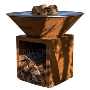 Barbecue à charbon Grill'Chic TRADITIONNEL Brasero Simple Cuve Corten Ø103X90cm - Modèle classique pour des soirées réchauffées en toute simplicité