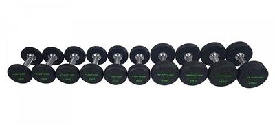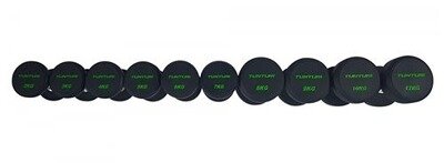 Tunturi haltères Cet ensemble de haltères Tunturi contient dix paires de haltères de 2 à 12 kg qui conviennent à un usage intensif. Le poids total de cet ensemble est de 132 kg. Les haltères professionnelles sont fabriquées avec des poids en acier entourés d’une couche protectrice en polyuréthane qui absorbe les chocs. Ces haltères sont d’une qualité comparable à celle des haltères en caoutchouc. Le polyuréthane offre à peu près la même protection contre les dommages causés par les haltères qui tombent que le caoutchouc. De plus, il est au moins aussi durable que le caoutchouc et plus résistant aux déchirures et aux dommages Caractéristiques techniques Couleur : noir, chrome Sexe : unisexe Matériau : acier, PU Poids par haltère : 2-12 kg Poids total : 132 kg Contenu :10 Paire d’haltères 1