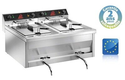 Friteuse classique Sofraca Friteuse professionnelle électrique à poser Super puissante 2 x 12 Litres