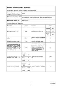 | Vitesse d’essorage (tours/min) |