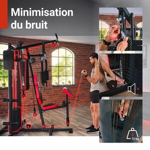 Le système de câbles et de poulies utilisé dans la station de sport assure un fonctionnement fluide de l’appareil. Les poulies des câbles sont équipées de roulements, garantissant un entraînement sûr et confortable.