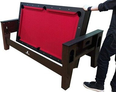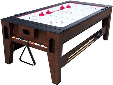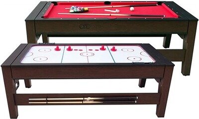 La table de jeu Reverso vous offre deux fois plus de plaisir de jeu ! En un tour de main vous passez simplement du billard à l’air hockey ! Placez la table parfaitement horizontale grâce aux pieds réglables. La table de jeu repose sur un châssis stable et a un look en bois naturel. Surface Billard résistante, recouverte d’un tissu 50% laine 50% polyester. Surface Air Hockey avec système d’air pulsé, permettant une parfaite glisse du palet. La soufflerie fonctionne avec un moteur 220V/50HZ très silencieux. Inclus, pour le billard: 16 boules de 57mm, un triangle en bois, 2 queues de 145cm et de la craie. Pour le Air hockey: 4 palets et 4 pousseurs, un compteur de points analogique, les bordures intérieures.de la table sont caoutchoutées pour plus d’action et moins de nuisance sonore. Garantie 24 mois. Dimensions de la table (L x l x H): 217 x 107 x 81 cm. Dimensions surface billard (L x l x H): 169 x 85 x 3,9 cm. Dimensions surface l’air hockey (L x l): 177 x 92 cm. Équipé de pieds de table réglables. Coins arrondis. A brancher sur une prise électrique. Poids net: 127 kg. Poids brut : 144 kg. Colisage : 2 cartons. Carton 1 : 207 x 200 x 24 carton 2: 115 x 85 x 27.
